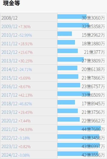16年12月期には一時90%を超えた自己資本比率ですが、直近の5年間は40%~50%に落ち着いています。
