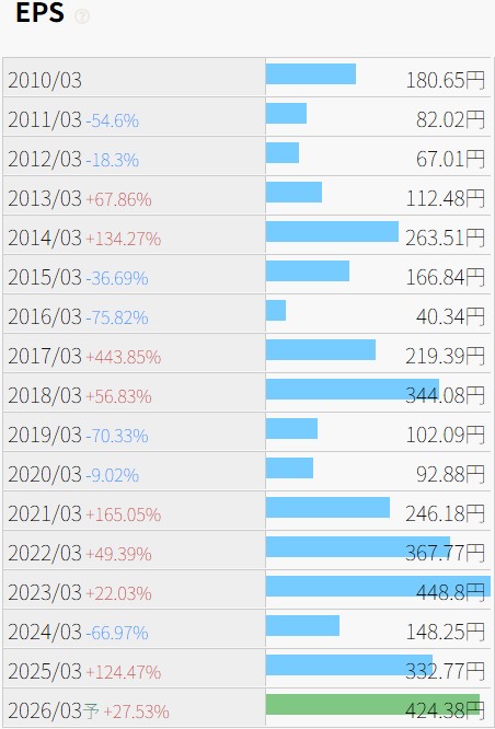 EPSの推移だけを見て、来期が増益か減益かを予想することは至難の業ではないでしょうか。