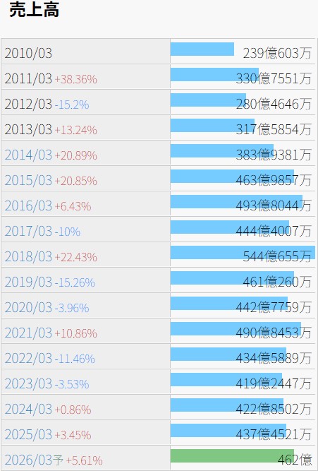 一際EPSが高い23年3月期の売上高は419.2億円で営業利益率は5.35%、EPSが低下した20年3月期の売上高は442.8億円で営業利益率は1.12%。利益率の重要性がよく分かります。