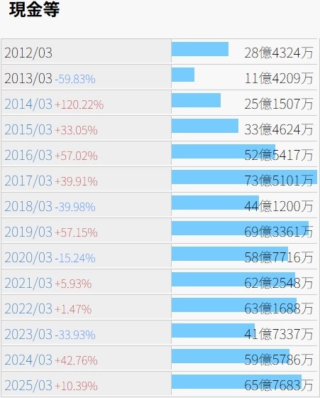 特に現金等を積み増していく意図は無いようで、増えては減ってを続けています。