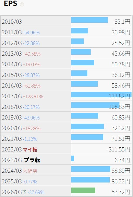 EPSの推移からも、成長性という観点では苦戦が見て取れます。