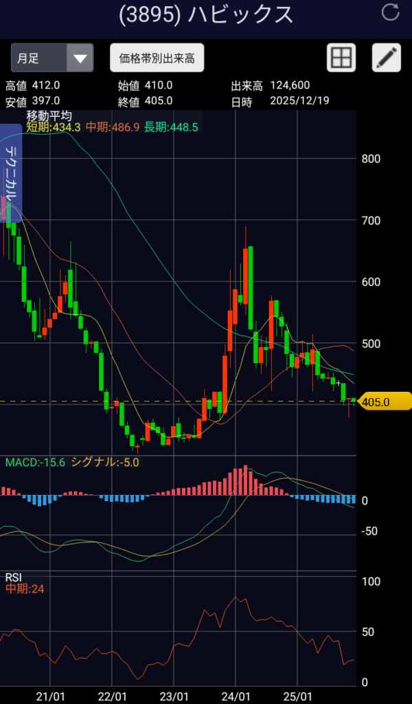 3895 ハビックス を取り上げます。2025年12月21日(日)時点のネットキャッシュ比率(投資有価証券は考慮しない)は1.07です。