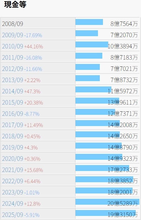 自己資本比率は徐々に数値を高めており、25年9月期には74.7%となっています。14年9月期の54.3%から20%以上上昇しています。