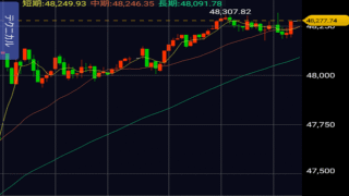 Market 【TSMC純利益過去最高】2025年10月16日(木)の株価推移(5分足チャート)と市況 終値・日経平均 48,277.74 前日比+605.07(+1.27%)・TOPIX 3,203.42 前日比+19.78(+0.62%)・グロース250 730.39 前日比-11.11(-1.50%)市況 東証プライム市場の売買代金は5... 2025.10.17 Market