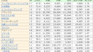 ネットキャッシュ比率(投資有価証券は考慮しない)が1以上の銘柄リストを更新しました。データは2026年1月31日(土)時点のものを使用しています。
