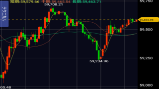 Market 【NT倍率16目前】2026年4月22日(木)の株価推移(5分足チャート)と市況 終値・日経平均 59,585.86 前日比+236.69(+0.40%)・TOPIX 3,744.99 前日比-25.39(-0.67%)・グロース250 801.82 前日比-3.78(-0.47%)市況 東証プライム市場の売買代金は7兆... 2026.04.23 Market