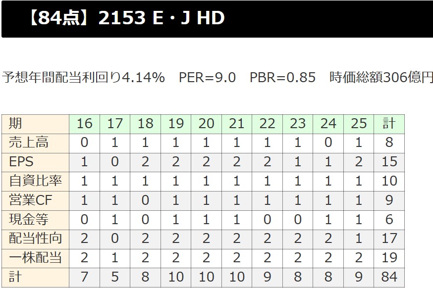 ・EPS    : 前期を超えていれば2点。前期以下なら1点。マイナスなら0点。