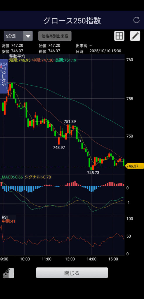 ・グロース250 746.37 前日比-12.87(-1.70%)
