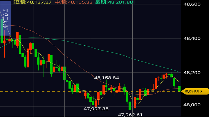 ・日経平均 48,088.80 前日比-491.64(-1.01%)