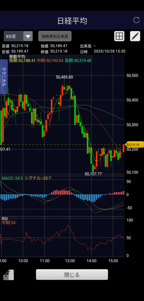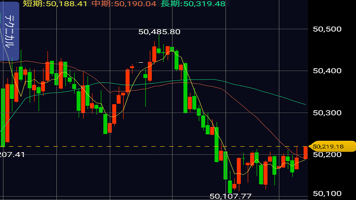 ・日経平均 50,219.18 前日比-293.14(-0.58%)