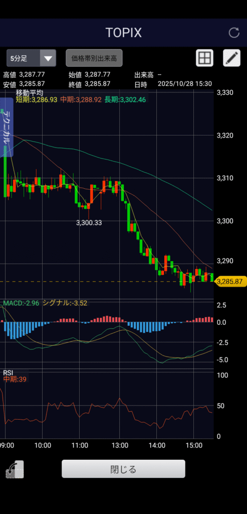 ・TOPIX 3,285.87 前日比-39.18(-1.18%)