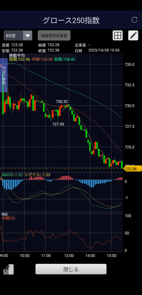 ・グロース250 722.38 前日比-12.56(-1.71%)
