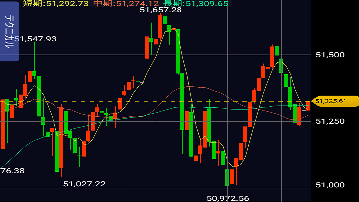 ・日経平均 51,325.61 前日比+17.96(+0.04%)