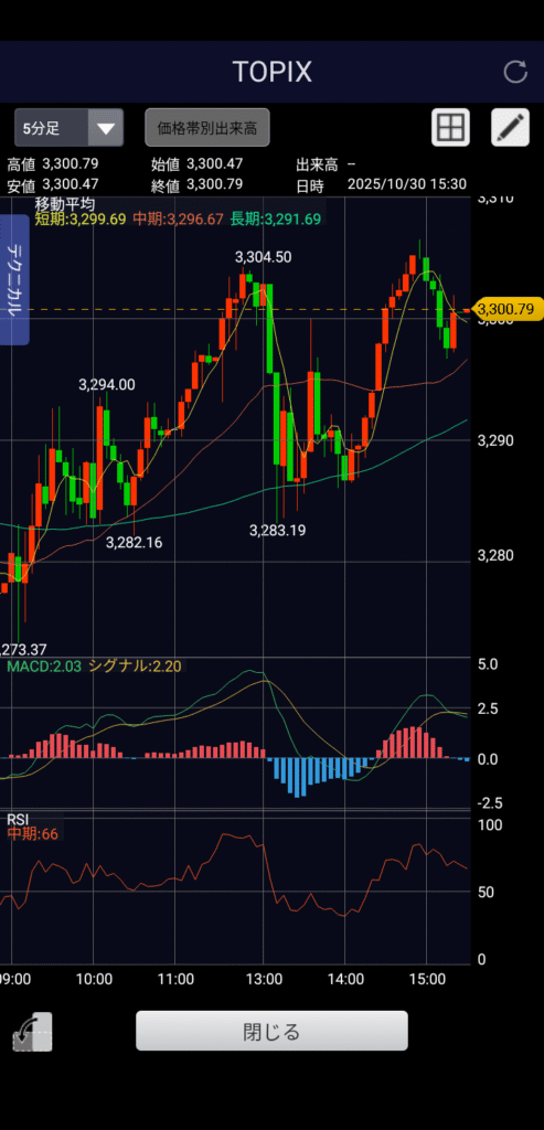 ・TOPIX 3,300.79 前日比+22.55(+0.69%)