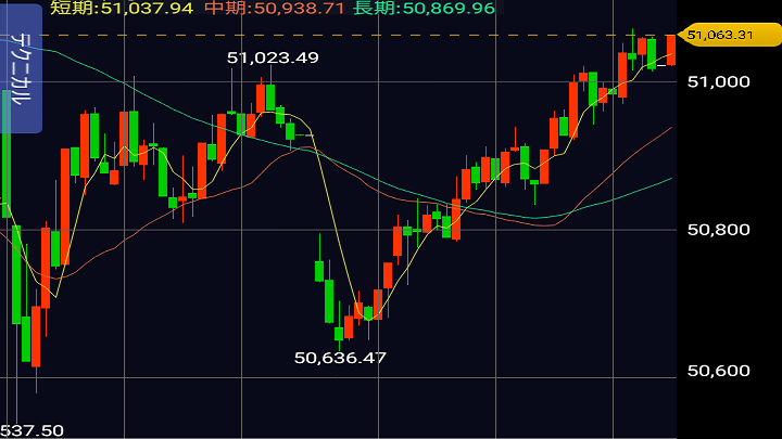 ・日経平均 51,063.31 前日比+220.38(+0.43%)