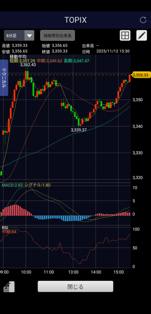 【NVIDIA株全売却】2025年11月12日(水)の株価推移(5分足チャート)と市況