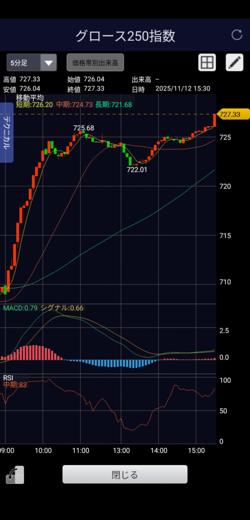 ・グロース250 727.33 前日比+17.59(+2.48%)