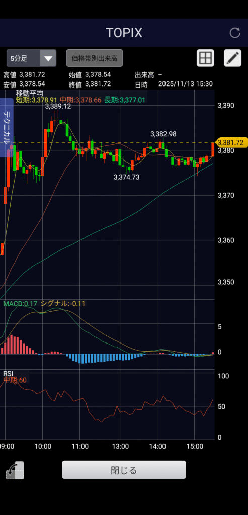 ・TOPIX 3,381.72 前日比+22.39(+0.67%)