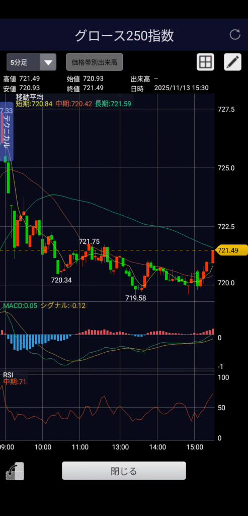 ・グロース250 721.49 前日比-5.84(-0.80%)