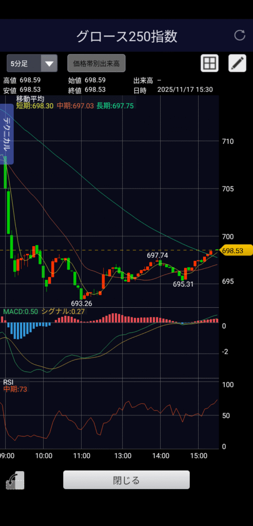 ・グロース250 698.53 前日比-10.01(-1.41%)