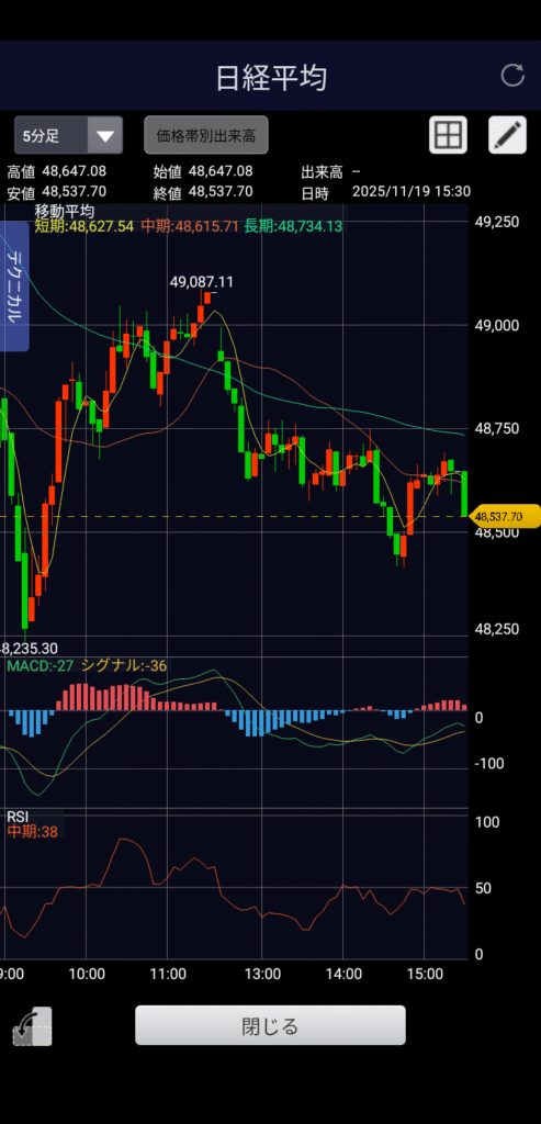・日経平均 48,537.70 前日比-165.28(-0.34%)