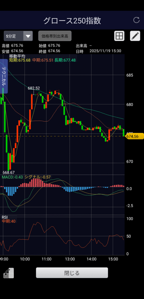 ・グロース250 674.56 前日比-5.41(-0.80%)