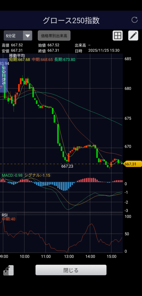 ・グロース250 667.31 前日比-13.12(-1.93%)