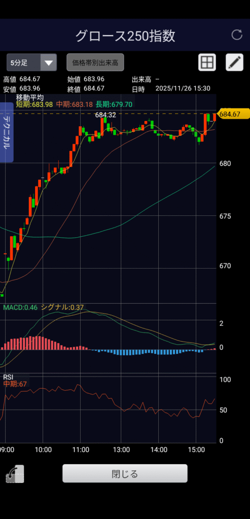 ・グロース250 684.67 前日比+17.36(+2.60%)