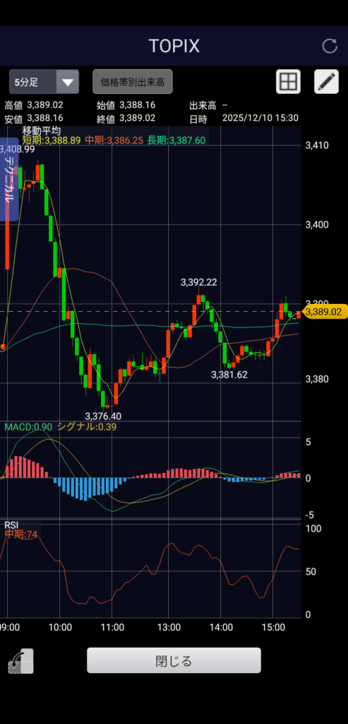 ・TOPIX 3,389.02 前日比+4.10(+0.12%)