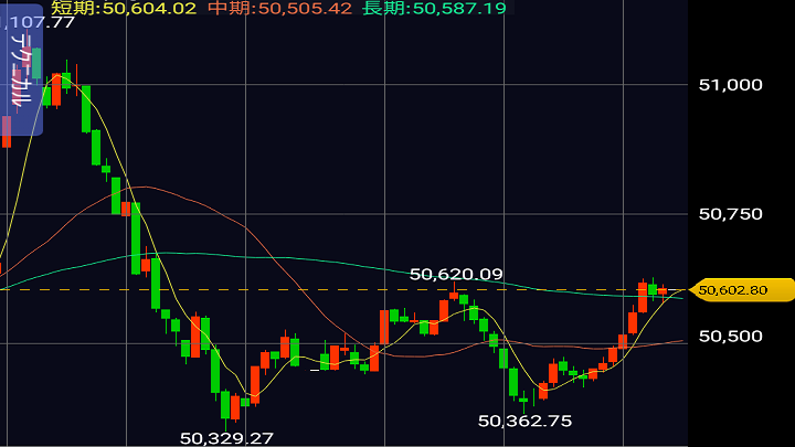 ・日経平均 50,602.80 前日比-52.30(-0.10%)