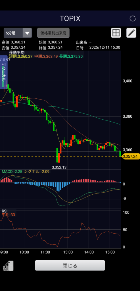 【FOMC無事通過】2025年12月11日(木)の株価推移(5分足チャート)と市況