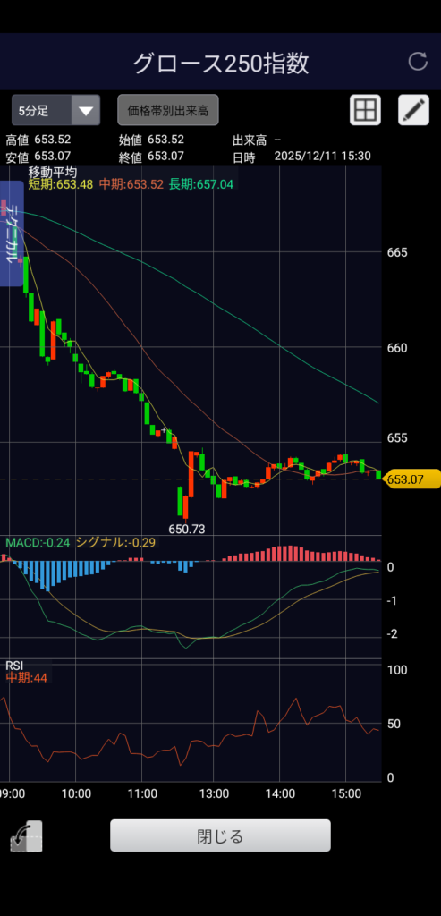 ・グロース250 653.07 前日比-14.61(-2.19%)
