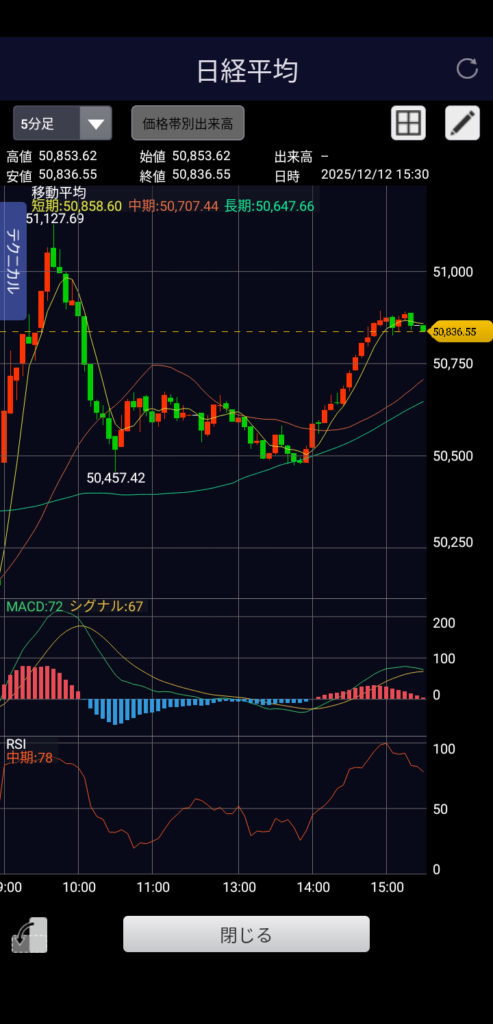 日経平均先物・オプション12月物の特別清算指数(SQ)値は50,536.54。