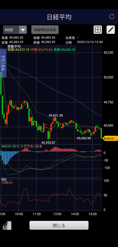 ・日経平均 49,383.29 前日比-784.82(-1.56%)