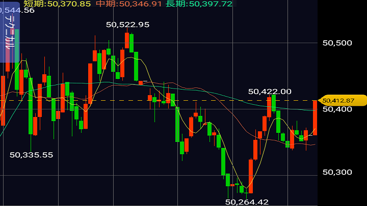 ・日経平均 50,412.87 前日比+10.48(+0.02%)