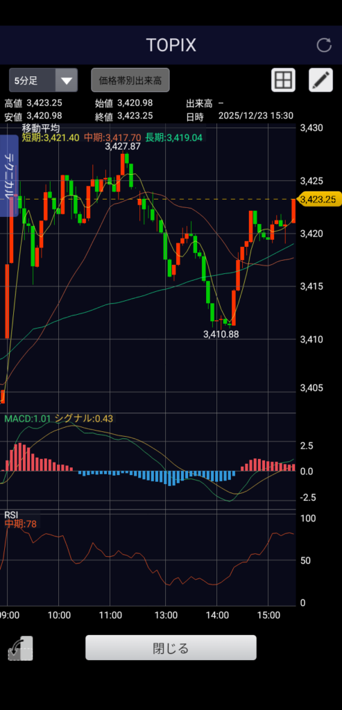 ・TOPIX 3,423.25 前日比+18.08(+0.53%)