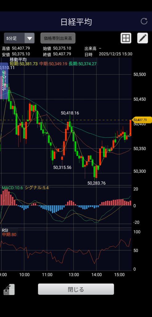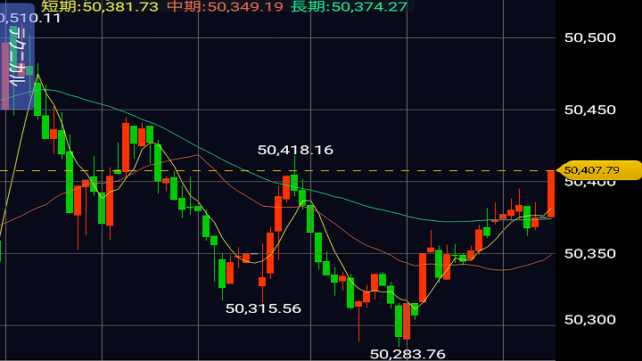 ・日経平均 50,407.79 前日比+63.69(+0.13%)