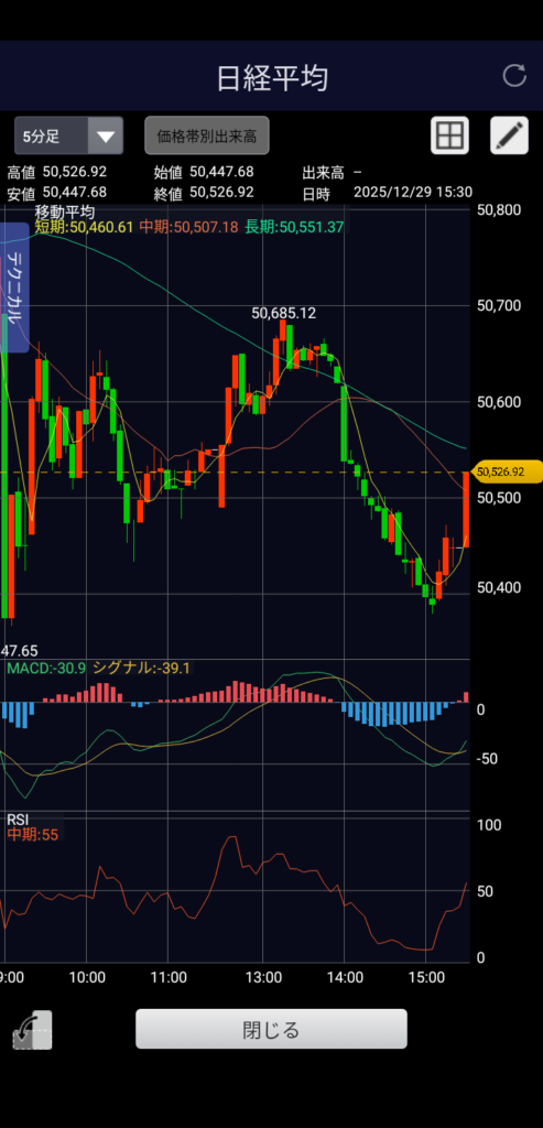 ・日経平均 50,526.92 前日比-223.47(-0.44%)