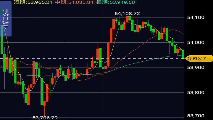 ・日経平均 53,936.17 前日比-174.33(-0.32%)
