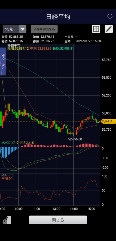 ・日経平均 52,885.25 前日比-961.62(-1.79%)