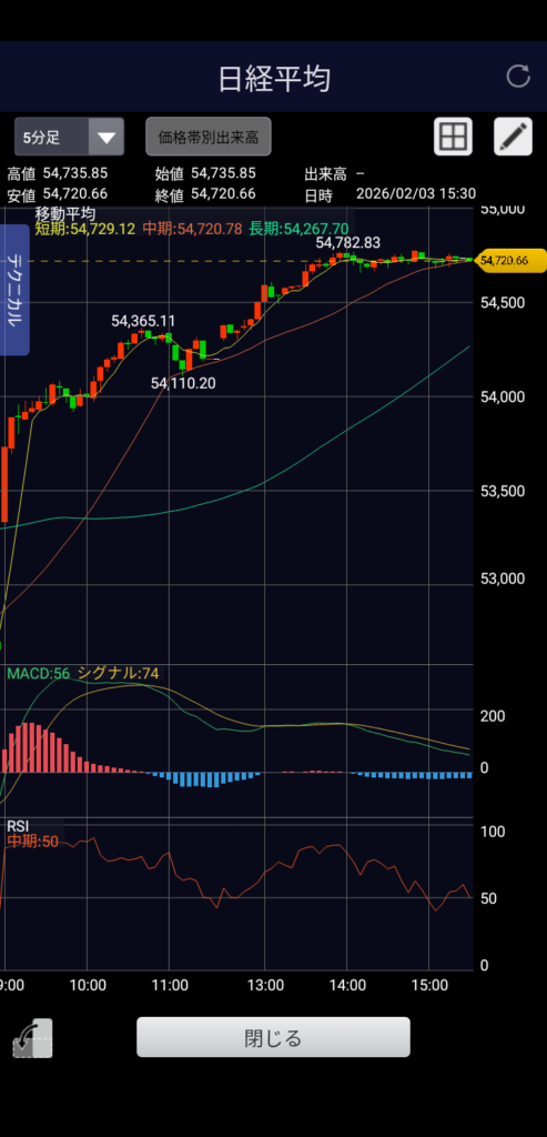 日経平均は1/14(水)に記録した取引時間中の史上最高値54487.32を上回って大引け。