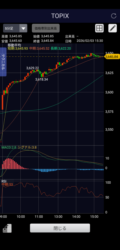 ・TOPIX 3,645.84 前日比+109.71(+3.10%)