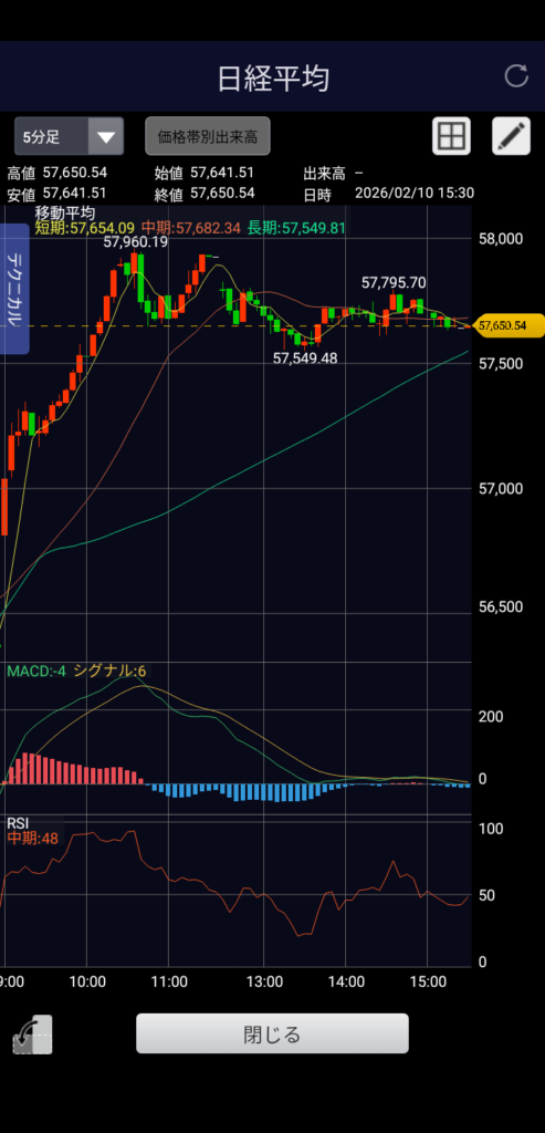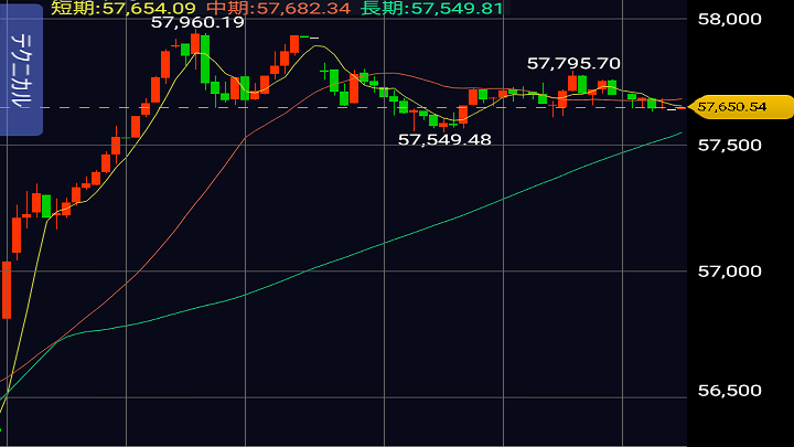 ・日経平均 57,650.54 前日比+1,286.60(+2.28%)