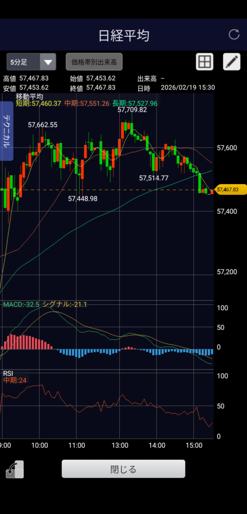 ・日経平均 57,467.83 前日比+323.99(+0.57%)