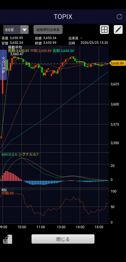 ・TOPIX 3,650.99 前日比+91.32(+2.57%)