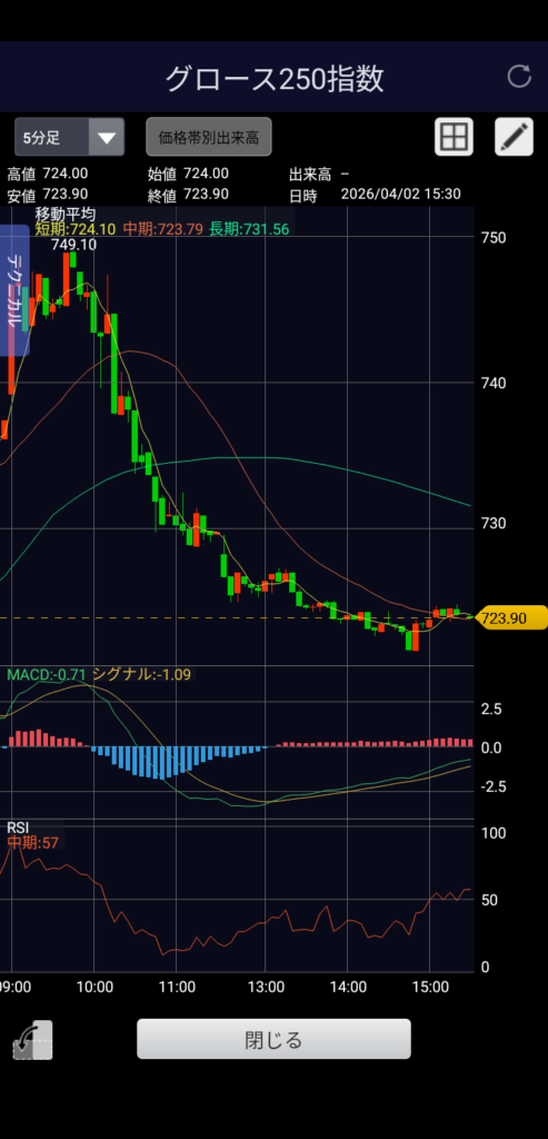 ・グロース250 723.90 前日比-13.49(-1.83%)