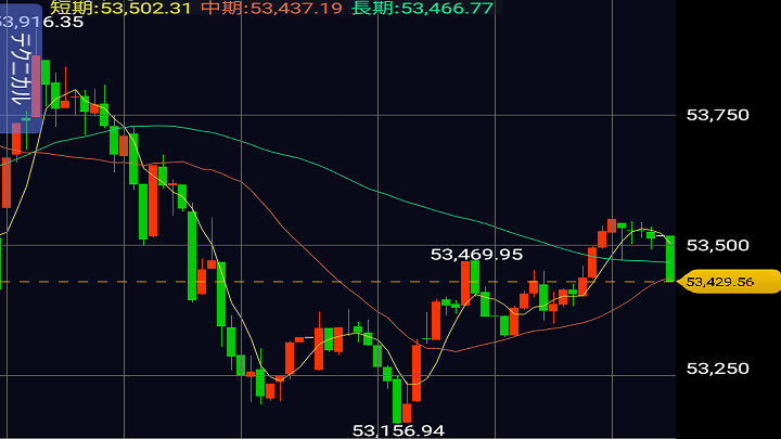・日経平均 53,429.56 前日比+15.88(+0.03%)