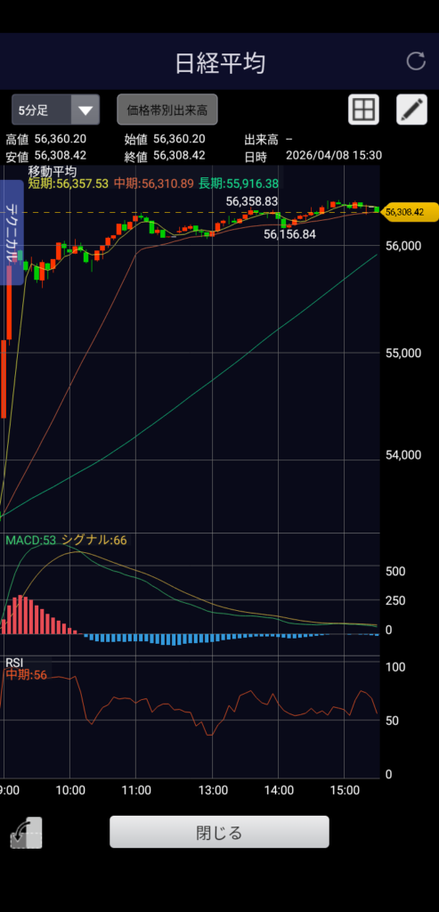 ・日経平均 56,308.42 前日比+2,878.86(+5.39%)