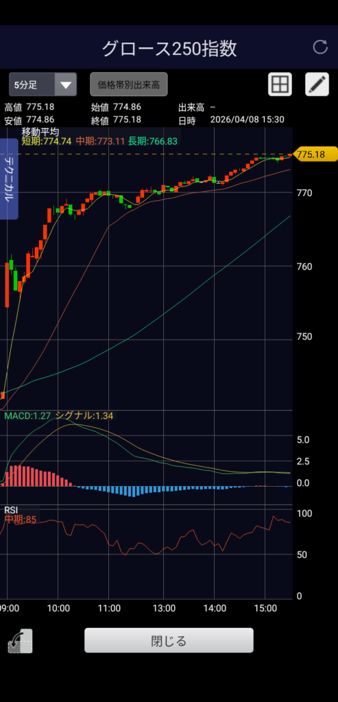 ・グロース250 775.18 前日比+32.27(+4.34%)