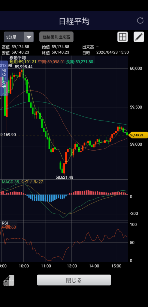 ・日経平均 59,140.23 前日比-445.63(-0.75%)